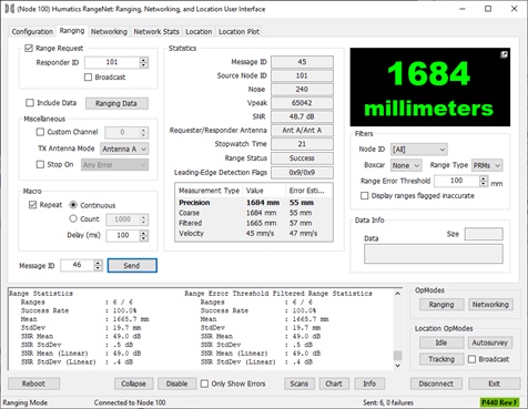 Accurately sampling and coherently integrating these pulses allows us to measure ranges of hundreds of meters with centimeter-level precision. In radar mode, we can detect motion as subtle as a person’s breathing. These pulses can also be used to transfer data.